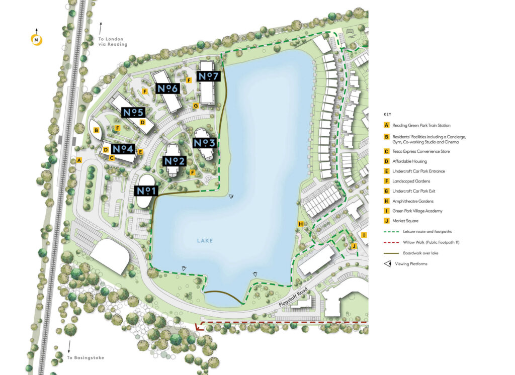 Reading’in güneyinde, 3 mil (4.8 km) uzaklıkta, merkezi Londra’ya 42 mil (67 km), Heathrow Havalimanı’na ise 271 mil (436 km) mesafede bulunan 7 dönümlük (2.8 hektar) arazi üzerinde yer alan bu proje, doğa ile iç içe bir yaşam sunuyor. Gölet etrafında yer alan 7 binada toplam 461 şık ve yüksek kaliteli daire bulunuyor. Daireler, sakin gölet manzaralarının keyfini çıkaran ve modern iç mekanlarla tasarlanmış olan 1 ve 2 yatak odalı seçeneklerden oluşuyor. Ayrıca, Reading şehir merkezine, Londra’ya ve ana otoyollara mükemmel kara bağlantılarıyla ulaşım oldukça kolay.