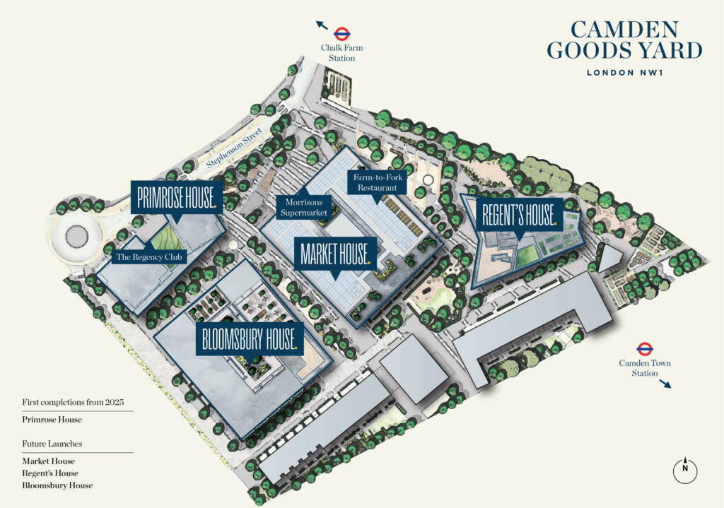 Primrose House, Camden Goods Yard’da 8 dönümlük bir alan içinde yer almakta olup, dünyaca ünlü tasarımcı Tara Bernerd tarafından dizayn edilmiş şık konutlar sunmaktadır. Camden Town’un enerjisini, Primrose Hill’in zarafetini ve Regent’s Park’ın huzurunu bir araya getiren bu proje, yaşam, çalışma ve dinlenme için heyecan verici bir mahalle yaratmaktadır. Üst düzey mimarisi, davetkar kamusal alanları ve geliştirilmiş ulaşım bağlantılarıyla Primrose House, NW1 bölgesinin geleceğinde önemli bir rol oynamaktadır.