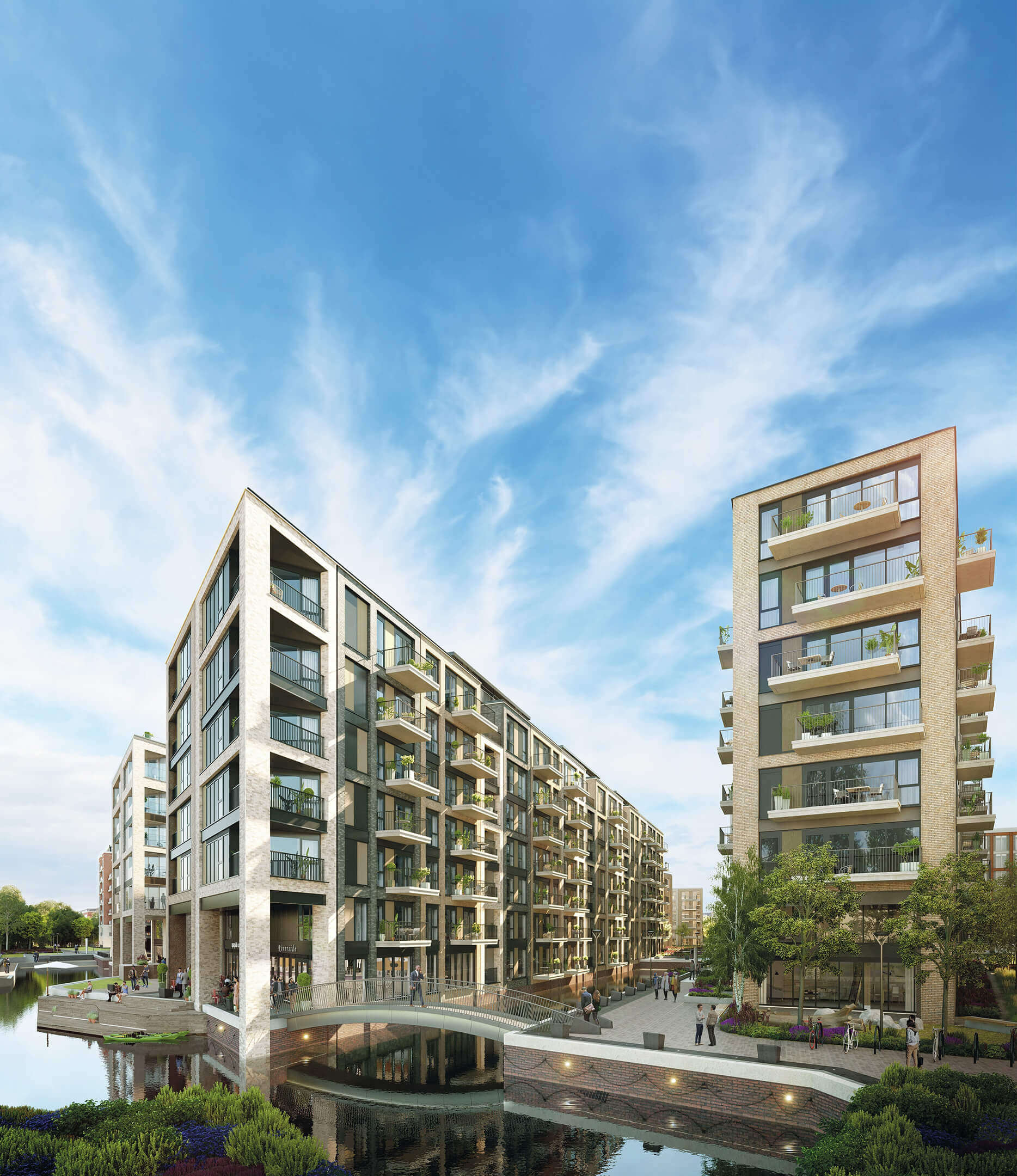 Chelsea Creek, merkezi Londra’ya karakteristik Avrupa tarzı bir su kenarı yaşamı sunuyor. Ödüllü mimari pratik Squire and Partners, ilham için Amsterdam ve Kopenhag’ı inceledi. Aydınlık, modern daireler, huzurlu kanal su yolları ve ağaçlarla çevrili yaya yollarına bakarak, yenilikçi ve taze bir şehir yaşamı sunuyor.